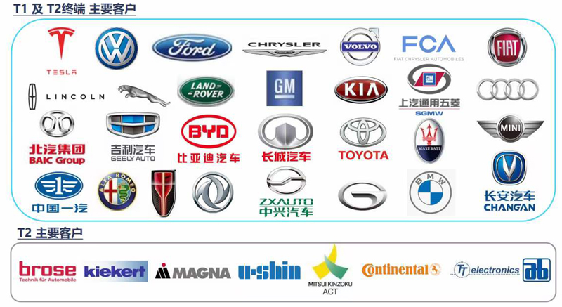 间接配套:大众,DCX, FCA,福特,JLR,通用, 吉利,上通五菱, 北汽,一汽